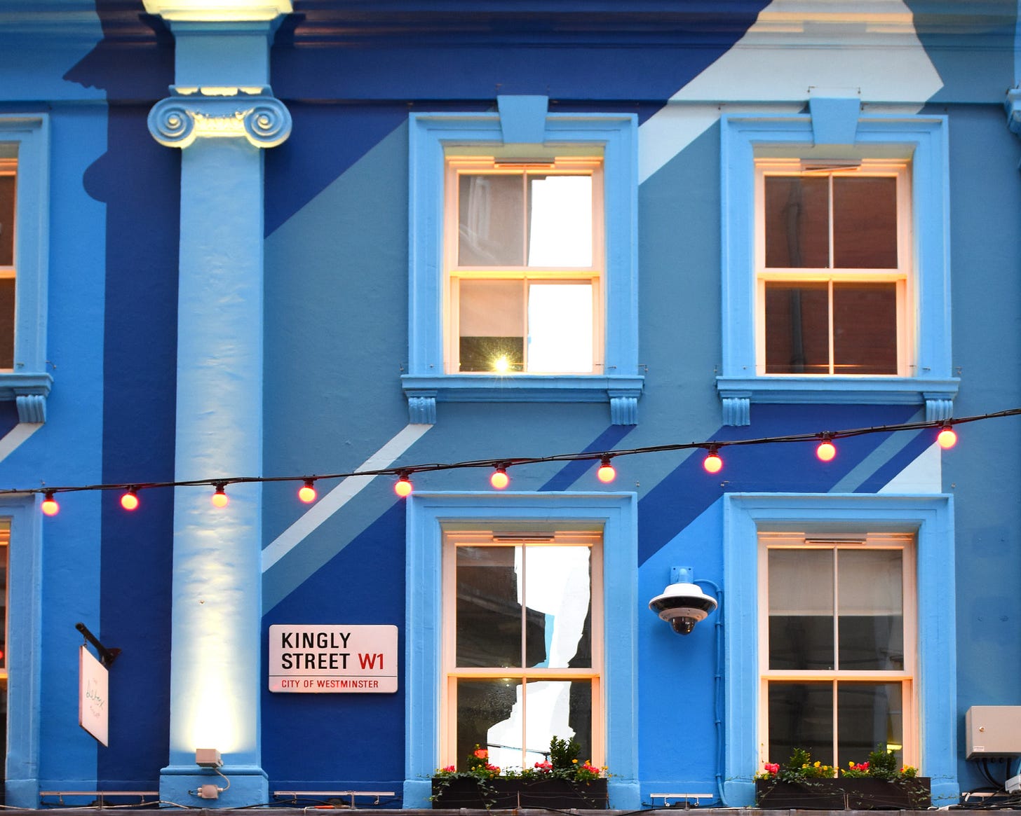 Squeezed between Regent Street and Carnaby Street, Kingly Street is more of an alleyway than a street, providing access for deliveries to the rear of Hamleys and Calvin Klein. Now a hub for fashionable restaurants and exclusive members’ clubs, many of the buildings date from the early eighteenth century. Their use over time reflects Soho’s economic ebb and flow from sought after residences to light manufacturing and workshops for a variety of trades. As Soho shifted to serving the needs of the leisure economy, so clubs began to take advantage of the street’s low-rent secluded basements.