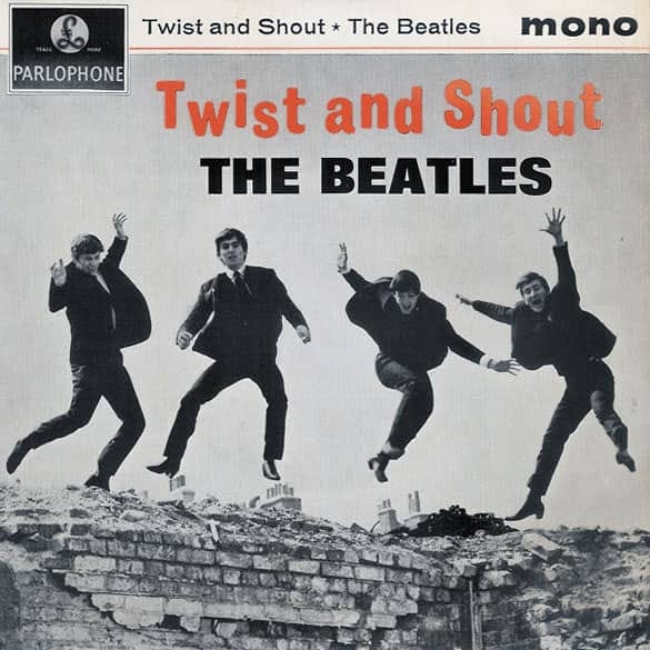 The typography is bold and simple. Twist and Shout appears in striking red, apart from a faint line at the top it is the only strong colour on the sleeve. The Parlophone logo and the word mono sit calmly above.